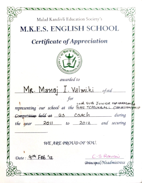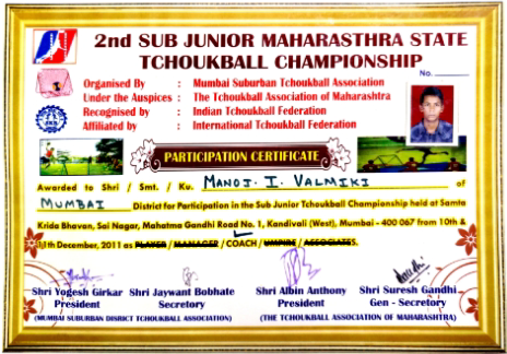 I am also a Former State Level Coach for INDIAN TCHOUK BALL FEDERATION for the year 2011.